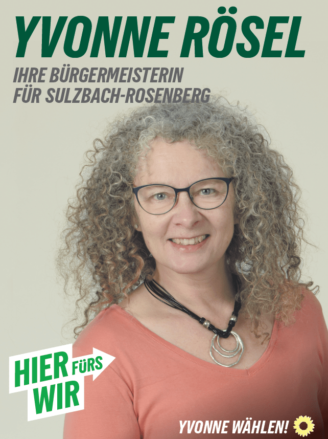 Mit großer Zustimmung wurde gestern auf der Aufstellungsversammlung von BÜNDNIS 90/DIE GRÜNEN Sulzbach-Rosenberg Yvonne Rösel erneut als Bürgermeisterkandidatin nominiert. Für uns ist klar: Yvonne ist die beste Kandidatin für Sulzbach-Rosenberg – und das wurde an diesem Abend deutlich spürbar.